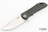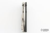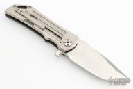 This Dominator by Darrel Ralph features a satin finished, compound ground clip point blade with swedge, notched thumb ramp and flipper. The handle has a carbon fiber "A" side scale and titanium lockside with matching tip up clip over a titanium back spacer. Lanyard hole in pommel. Includes a padded zippered case. Light scratches are visible on the handle otherwise the knife is in Excellent Condition.