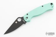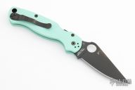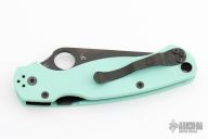 In this special edition of the Paramilitary 2, it comes with teal G10 handles instead of the normal FRN scales. G10 has great weather-resistant properties which give the handle a sure grip in any environment. The blade of the knife is DLC coated and the steel is upgraded from the normal S30V stainless steel to S90V.