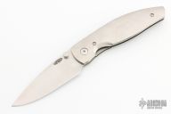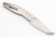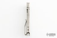 This Atom Linerlock by Three Rivers features a stonewash finished blade with dual thumbstuds. The handle has milled titanium scales, titanium liner with a titanium tip up reversible clip. Nice detent, lockup and blade seating. Comes with Three Rivers Manufacturing box, and papers. Excellent condition.