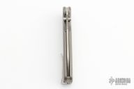 The Rockwall by Tactile Knife features a stonewashed Magnacut blade with notched thumbrest and dual thumbstuds. The handle has a MEFP milled titanium frame with a tip up stainless steel clip and backspacer. Comes with original box and COA. Excellent condition. Comes with a black leather wallet sheath that holds the knife and a pen and cards. Excellent condition.