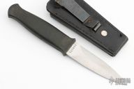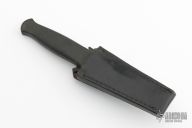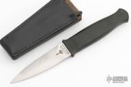 This boot knife by Gerber features a satin finished double edged blade with .170" blade stock and .827" blade depth, hidden tang construction with cast aluminum handle. Comes with original black leather sheath. Has some light scuffs/scratches, otherwise good condition for its age. #B6857S