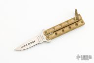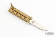 This Dragon Claw by Taylor Balisong with brass handles. Has a satin finished blade. Has some patina, otherwise excellent condition. Comes with original box.