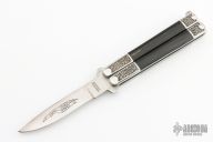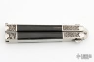 This Balisong by Parker Cutlery Company features a satin finished blade. The handles are chrome plated with buffalo horn inlays. Has a couple of light scratches, otherwise excellent condition. Comes with original box