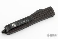 The Ultratech is a precision-made, out-the-front tactical knife. Has a fluted DLC standard tanto blade. Black frag pattern aluminum handle with black hardware, tip down stainless steel clip and nickel boron internals. Comes with original box and papers. Excellent condition. 10/2020 #282