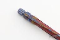 This custom titanium pen. Twist the top to deploy the pen. (please let us know if you know who made this) Has some scuffs, otherwise excellent condition. Comes with a Fisher insert.