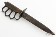 Extremely hard to find. This is a WWI trench knife made by L.F & C. Cast Bronze handle with U.S. 1918 stamped. Blade in good shape for its age. Comes with original scabbard with one of the original tabs, rare to have the original sheath with tabs at all. Includes a padded zippered case. Has some patina and scratches, has been resharpened, otherwise good excellent condition for its age.