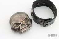 .925 Sterling Silver Harley Davidson Belt Buckle dated 2005. Has some patina, otherwise excellent condition. Also comes with a leather cuff.