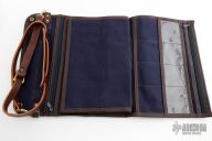 17 Knife Case, has 4 zippered pockets, shoulder strap, the center section comes out. Excellent condition.
