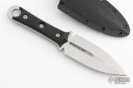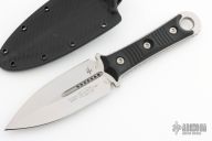 This SBD by Microtech Knives and Borka Blades features a stonewash finished double-edged blade with .188" blade stock and 1.556" blade depth, full tang construction with black G-10 scales. Comes with the original kydex sheath, original box and papers. Excellent condition. Dated 04/2023 and S/N 2839