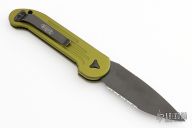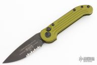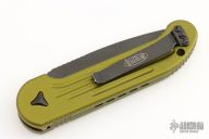 This LUDT side opening automatic from Microtech has a black blade with a partially serrated edge and an OD Green aluminum frame. Stainless steel clip. Dated 07/2022 and serial number 27048. Has some scuffs, otherwise excellent condition.