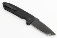 This Rockeye Auto Operator by Pro-Tech has a black blade with notched thumbrest. The handle has a black textured aluminum frame with a matching steel tip up pocket clip. Typical flawless Pro-tech mechanics and blade seating. Comes with original box and papers. Comes with a deep carry pocket clip and original clip. Excellent condition.