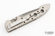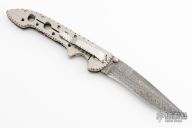 This Dressed Perfigo folder from Pat & Wes Crawford features a Damascus blade with dual thumb studs, fileworked spine and false top edge. The handle has a jeweled and fileworked titanium liners, fileworked stainless steel backspacer, and a tip down fileworked stainless steel clip. Smooth action with a nice detent and lockup. Excellent condition. Comes with a zippered case.