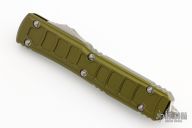 This Ultratech II by Microtech Knives features a stonewashed blade. The handle has an OD Green aluminum frame with a "stair step" design for better grip. Stainless steel tip down clip marked 05/2022 with s/n 294. Comes with original box and papers. Excellent condition.