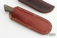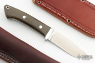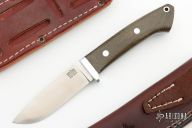 This Classic Drop Point Hunter from Bark River Knives features a satin finish drop point blade, .158" blade stock and .978" blade depth, full tang construction. The handle is comprised of stainless steel guard and green canvas micarta scales with aluminum pins and lanyard hole. Includes 2 brown leather sheaths with belt loop and original box. Excellent condition.