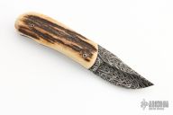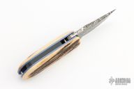 This Small Ultralight Linerlock by Chuck Gedraitis features a Mosaic Damascus blade with a nail nick. The handle has stag scales, anodized titanium liners, black G-10 backspacer. Nice detent, lockup and blade seating. Comes with a zippered case. Excellent condition.