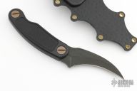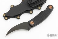 This Elvia by Turner CNC features a DLC finished blade, .176" blade stock and 1.190" blade depth with full tang construction. The handle has a milled checkered black g10 scales. Comes with a kydex sheath and the knife will fit in either direction, and COA. 60HRC with Cryo. Excellent condition.