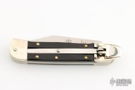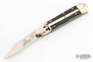 This leverlock auto by Hubertus features a mirror polished drop point blade, nickel silver double bolsters, ebony scales, and brass liners and pins. Opens with a nice snap. Very fast opening. Comes with original box. New condition.
