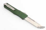 This Combat Troodon OTF automatic features a satin finish S/E blade with a standard edge. OD Green aluminum handle with stainless steel clip. Glass breaker. Dated 04/2015 S/N 14649. Includes the original box and papers. Has a couple small spots on the blade, and a couple light scuffs, otherwise excellent condition.