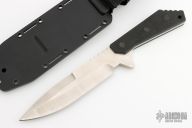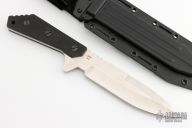 This Buck/Strider collaboration features a satin finished spear point blade with false top edge and notched thumbrest, .253" blade stock and 1.497" blade depth, full tang construction. The handle has textured black G-10 scales with a lanyard hole. Comes with original sheath. Excellent Condition.