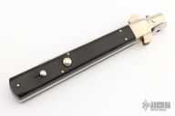 Angelo Campolin Sr. was born in 1923 in Maniago, Italy. He worked on perfecting his knife making skills before WWII and at this time made his first switchblades. After the war, in 1947 he started his company and made 30 stilettos with the marking “Angelo Campolin”. In the 1970’s Angelo’s son Gianni started to work in the company and they were specializing in folding hunting knives and also manual folding stilettos for the Robert Klaas company in Solingen Germany with their Kissing Cranes mark. In 2002 American switchblade collectors Dan Fuller, Brad West, and Tim Zinser were visiting Maniago and enjoying a few glasses of wine in a bar with Angelo Jr. and Gianni. The discussion was about a new name for some knife projects they wanted to pursue. It was Brad West that suggested the tang stamp should be AGA, for Angelo, Gianni, Angelo, thus representing three generations in the knife making business. The Campolins liked it and it stuck. In the beginning it was just a few items, but grew to the point where now there are 12 models and different scale options. The goal has been to offer quality switchblades using the old methods and traditions. Being a collector himself, Angelo Jr. knows what others like. The company headquarters has moved to Austria with production still in the original Maniago shop, as well as the others in Maniago that produce the knives for A.G.A. Campolin.