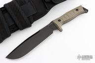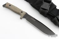 The Combat Jungle fixed blade from Fox Knives carries its blade weight to the tip, making it a chopping force to be reckoned with in the jungle and elsewhere. The N690Co steel blade is black coated and the handle is fitted with Micarta scales. The Combat Jungle is a heavy duty knife and comes with a nylon sheath that includes leg straps for carry.