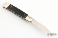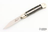 This leverlock auto by Hubertus features a mirror polished drop point blade, nickel silver double bolsters, ebony scales, and brass liners and pins. Opens with a nice snap. Very fast opening. Comes with original box. New condition.