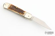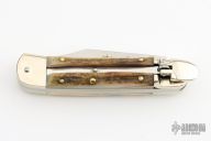 This leverlock auto by Hubertus features a mirror polished blade, nickel silver double bolsters, stag scales, nickel silver liners and brass pins. Opens with a nice snap. Very fast opening. Comes with original box and papers. New condition.