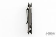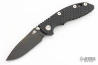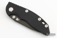 This 3" XM-18 Slicer by Rick Hinderer Knives features a Battle Black finished drop point blade with swedge, dual thumb studs and notched thumb rest. The handle is comprised of a textured black G10 scale over titanium liner on the "A" side and a Battle Black finished titanium lockside and titanium barrel spacers with matching filler tab, pocket clip, lockbar stabilizer and pivot. Comes with original box and extra hardware. Excellent condition.