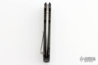 This M2 Auto by Walter Brend features a satin finished, recurved drop point blade with compound ground swedge and notched thumb ramp. Dated 06/12.  The handle has black anodized aluminum with non-slip inserts. The brushed steel pocket clip is positioned for right hand, tip up carry.  Includes a padded zippered case.  Excellent Condition.