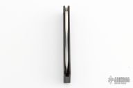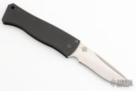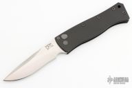 This Side Opening Automatic is a collaborative effort between Walter Brend and Woodard Knives. It features a hand rub satin finished blade with swedge. The handle has a black aluminum frame over a black backspacer with lanyard hole in pommel. Excellent condition.