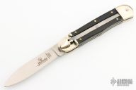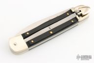 This leverlock auto by Hubertus features a tumbled drop point blade, nickel silver double bolsters, ebony scales, and nickel silver liners. Opens with a nice snap. Very fast opening. Comes with original box. New condition.