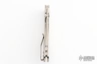 This Atom Linerlock by Three Rivers features a stonewash finished blade with dual thumbstuds. The handle has milled titanium scales, titanium liner with a titanium tip up reversible clip. Nice detent, lockup and blade seating. Comes with Three Rivers Manufacturing box, and papers. Excellent condition.