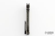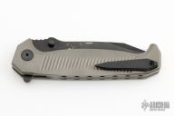 This Disaster Folder by Half Face Blades features a Elite Black Cerakote S45VN blade designed by Special Operators for easy carry and easy access in plate carrier or in low vis situations, for hard use and self defense. The blade is housed in a one piece slab of Titanium, precision milled and designed for reliability and strength; .150" blade stock