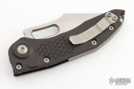 This Stitch Auto by Microtech Knives features a stonewashed blade and false top edge, notched thumb and finger rests. The handle has a black anodized and milled aluminum handle with a bead blasted titanium backspacer and a bead blasted stainless steel clip, tip up carry, lanyard hole at the butt. Comes with original box. S/N of 6688 and dated 04/2021. Excellent Condition.