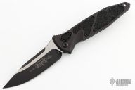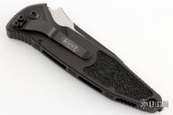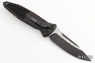 This Socom Elite Auto from Microtech has two toned drop point blade with notched thumbrest. The handle has a black aluminum frame with non-slip rubber inserts and a tip down stainless steel clip, black hardware. Dated 04/2022 and S/N 7814. Includes original box and paperwork. Excellent Condition.