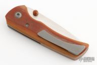 This Harley by David Freeman features a satin finished blade with dual natural linen micarta thumbstuds. The handle has natural linen micarta scales, bead blasted titanium liners, natural linen micarta backspacer, and a titanium clip positioned for tip up carry with hidden screws. Very nice action, detent, and blade seating. Comes with COA dated August 1st, 2022, card and patch. Has a couple light scuffs, otherwise excellent condition.