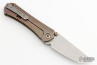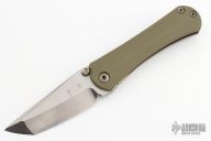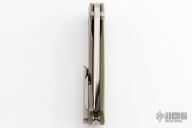 This SBTF by Borka Blades and Marfione Custom Knives features a satin finished chisel ground tanto blade with dual thumbstuds. The handle has a green G-10 and an anodized and tumbled titanium frame with a tumbled tip up clip. Nice detent, lockup and blade seating. Comes with zippered case. Has a couple scratches on the clip, otherwise excellent condition.