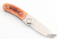Made by Peterson Precision Engineering and marketed by Gerber, the Paul knife was introduced in 1996 and discontinued in 1997 with a total run of about 23,000. This folder has an axial locking mechanism and a handle scale of jigged bone. This knife was assembled by hand. Excellent condition.