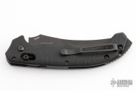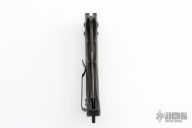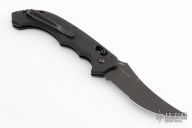 Well-balanced, symmetrical, eye-catching, The Bedlam has a black coated 154CM partially serrated blade that is released with the AXIS locking button.  Safety on top of knife. Sculpted black G10 handle fits comfortably and securely. Reversible tip up black clip. Comes with original box (box is in rough shape) and papers. Excellent condition.