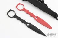 The Benchmade 176T SOCP Dagger is a Greg Thompson design. He is the creator of the Special Operations Combatives Program (SOCP) and has years of training and experience to draw from. This Trainer dagger has dull edges for safe practice, but matches the design of the regular knife. It is made from 440C stainless steel with a red finish. This Benchmade SOCP Dagger Trainer is a great option from the Benchmade SOCP Series