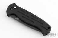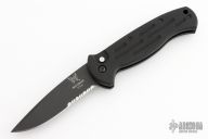 This AFO Automatic from Benchmade features a black drop point blade with swedge and partial serrations. The handle has black aluminum with a lanyard hole in pommel. Includes a nylon sheath. NSN-1095-01-446-4348. Excellent Condition.