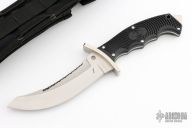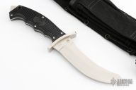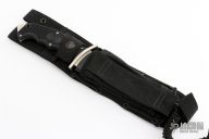 The Warrior fixed blade is one of the world's most intriguing combat knives. Based largely on the groundbreaking research of close-combat icon Michael Echanis, the original Warrior was a radical design intended primarily for use with reverse-grip tactics inspired by the Korean martial art of HwaRangDo. Produced in limited quantities by the late Al Mar and later resurrected by the martial artist Bob Taylor and Echanis contemporary Randy Wanner, it is one of the most coveted combat knives ever made. The Spyderco Warrior faithfully retains all the salient features of the original, while adding a number of performance enhancements. Its revitalization happened at the request of our Israeli customer, Guy Rafaeli. Ground from rust-free austenitic H-1 steel, it possesses the same differential hardness properties of a clay-tempered Samurai sword, giving it extreme cutting power and shock resistance. Its full-tang construction and textured handle scales provide a superior grip and edge orientation, maximizing the knife's effectiveness when employed with its signature tactics. The sheath is a black ballistic nylon snap-closed sheath with Molle-vest attachment capability. Comes with original sheath. Has a few light scratches, otherwise excellent condition.