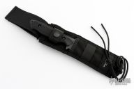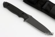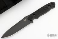 This Nimravus by Benchmade has a black blade drop point blade with a full tang construction. .117" Blade Stock. 1.235"Blade Depth. The handle has black aluminum scales. Includes a nylon sheath and the original box. Light scuffs are visible on the handle otherwise the knife is in excellent condition.