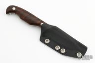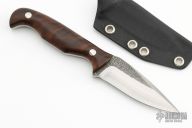This knife by Joe Watson features a San Mai Damascus blade, .130" blade stock and 1.005" blade depth, full tang construction. The handle has Claro Walnut scales. Comes with a kydex sheath. Excellent condition.