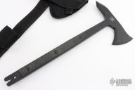 The 172BK Tomahawk is a quality axe that was designed by Eddie Killian as a breaching tool. The 1095 blade material is differentially heat treated for increased durability. It also features a contoured G-10 handle. The 1095 blade material and contoured G10 handle makes this tomahawk a very dynamic tool. Full-tang handle with G10 scales. Wedged/notched end for prying. Apple seed mill bevel for increased edge life. Comes with original sheath and the original box. Excellent condition.