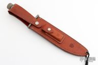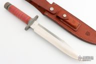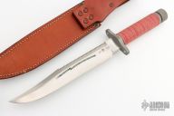 This SF-10 from Al Mar Knives is a large hollow handled survival knife with super sharp serrations on spine, .227" stock and 1.543" blade depth. Screw off handle cap and cord wrapped handle. Comes with a brown leather sheath with belt loop. Hard to find piece. Has some scuffs, otherwise excellent condition.