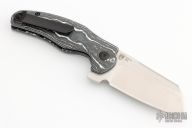 Premium M390 blade steel and white storm fat carbon handle scales bring the best of both worlds.