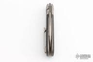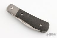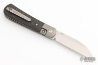 This Swayback Front Flipper by Enrique Pena features a satin finished blade with a front flipper and notched thumbrest. The handle has titanium bolsters, marble carbon fiber scales with a titanium backspacer and matching tip up pocket clip. Comes with original box and papers. Excellent condition.