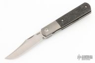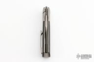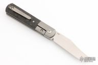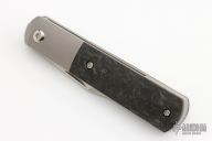 This Apache Front Flipper by Enrique Pena features a satin finished blade with a front flipper and notched thumbrest. The handle has titanium bolsters, marbled carbon fiber scales with a titanium backspacer and matching tip up pocket clip. Excellent condition. Comes with original box.