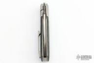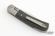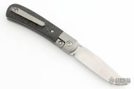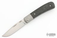 This Trapper Front Flipper by Enrique Pena features a satin finished blade with a front flipper and notched thumbrest. The handle has titanium bolsters, marbled carbon fiber scales with a titanium backspacer and matching tip up pocket clip. Includes a Pena X-Series padded box. Excellent condition.